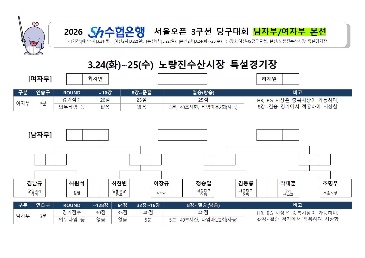 [°øÁö] 2026 Sh¼öÇùÀºÇà ¼¿ï¿ÀÇ 3Äí¼Ç ´ç±¸´ëȸ º»¼± °á°ú