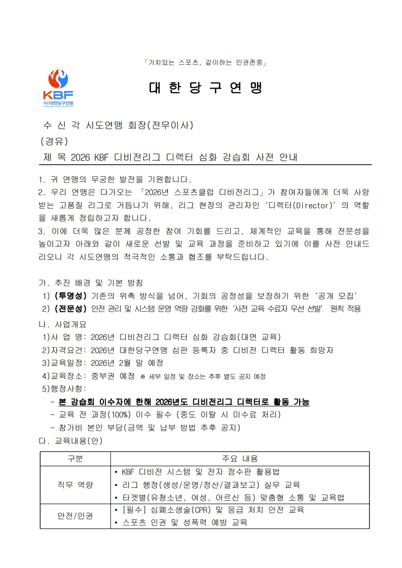 [°øÁö] 2026 KBF µðºñÀü¸®±× µð·ºÅÍ ½ÉÈ °½Àȸ »çÀü ¾È³»
